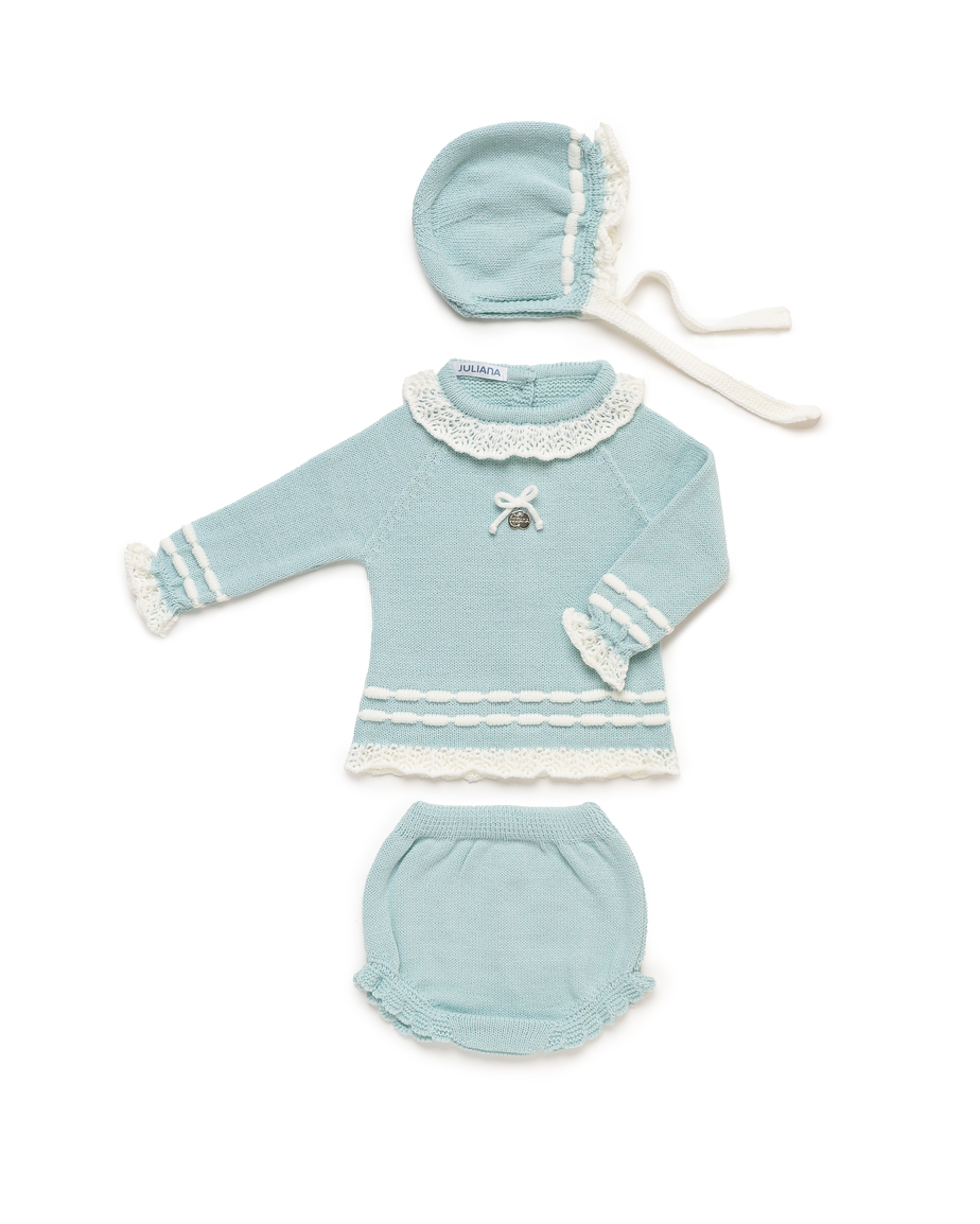 coordinato misto lana con culotte e cuffia