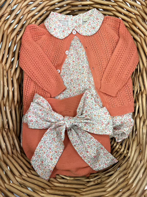 Body in cotone + braga con fiocco e cardigan