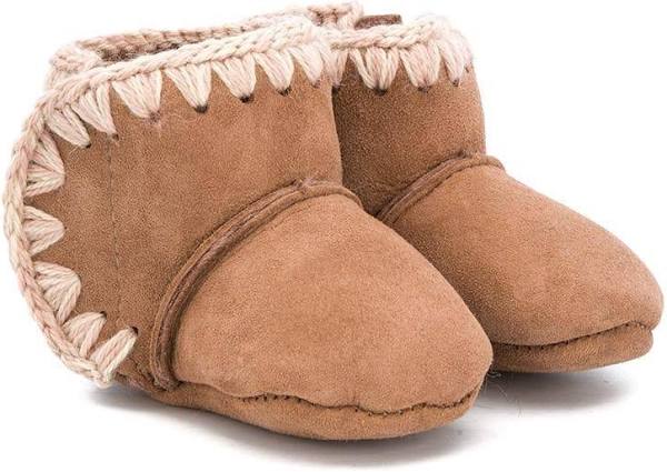 prodotto Stivali da neve per neonata Mou Kids marrone con design senza aperture è disponibile sullo store online RubinoKids.com. Realizzato in montone 100%, lana 100%. Il prodotto presenta una punta tonda, dettaglio con punto festone, design senza aperture, altezza alla caviglia e suola piatta.