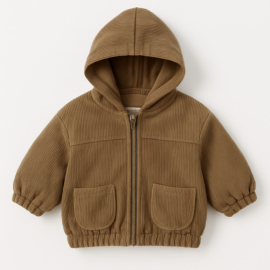 Giubbotto in velluto a costine con tasche e cappuccio , interno in pile