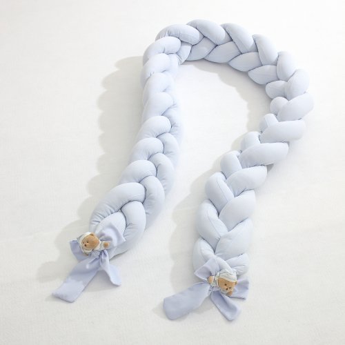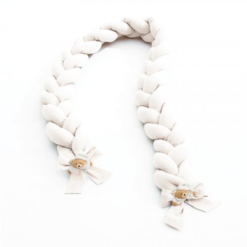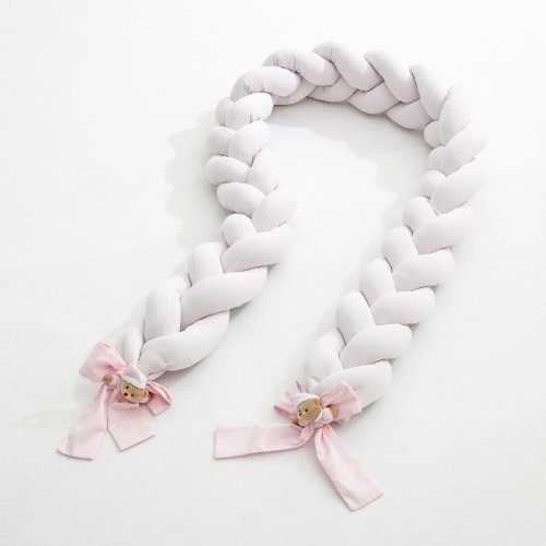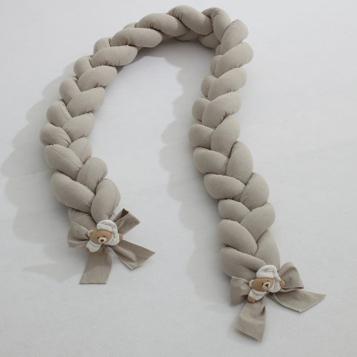 Il Riduttore intrecciato per lettino Nanàn impreziosito dai romantici fiocchi e dal dolce peluche Puccio. Il riduttore attutisce qualsiasi colpo del bebè, circondandolo di morbidezza. Quando il bimbo è molto piccolo, non è abituato ad essere lasciato solo in uno spazio vasto, il riduttore è un alleato per farlo sentire sempre protetto e a suo agio durante il momento del sonno. (lunghezza 2,50 metri)