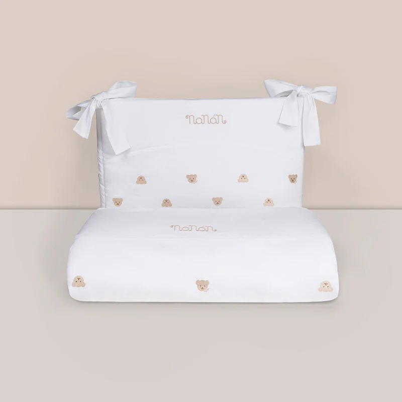 Il set piumone Nann della nuova collezione Tato è formato da: federa per cuscino, paracolpi imbottito, piumone sfoderabile e quindi facile al lavaggio, con una composizione di puro cotone chambre. Impreziosito graziosi orsetti ricamati. Un lettino giocoso e romantico, per far sentire protetto il bebè durante la nanna assieme al suo piccolo amico Tato. Piumone: 130×150 cm; Federa per cuscino:40×58 cm; Paracolpi laterali: L63xH50 – centrale L60xH58